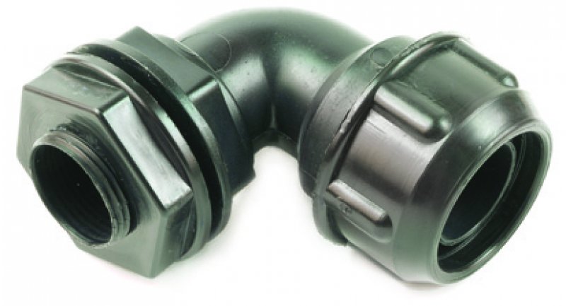 WVE, mufa gwintowana kolankowa; czarna (RAL 9005, UV-odporna) lub jasnoszara (RAL 7035), z gwintem metrycznym, IP 87