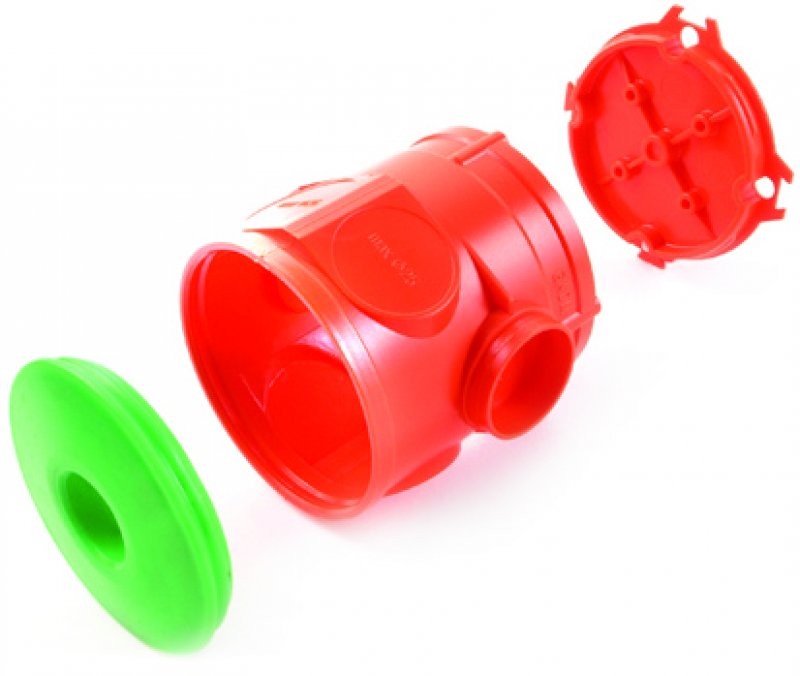 GAD, puszka do betonu, pojedyncza; z 4 gniazdami śrub, rozstaw śrub 60 mm, otwór średnica 60 mm, możliwość łączenia w modułach 71 mm, wysokość puszki 74 mm, maks. 6 wejść rur do średnica 25 mm Elementy składowe: część główna GADM, pomar