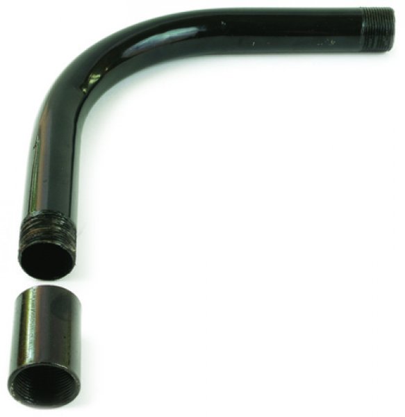 GSB, kolanko gwintowane; lakierowane na czarno (RAL 9005) lub cynkowane zanurzeniowo, do łączenia sztywnych rur stalowych GSR pod katem 90°, z obustronnym gwintem i złączką gwintowaną nakręconą jednostronnie